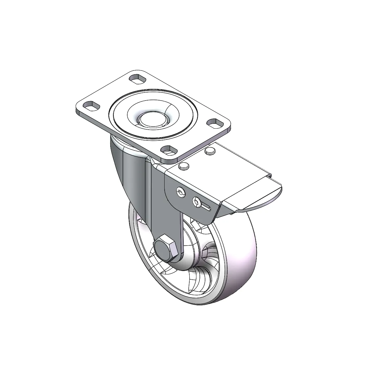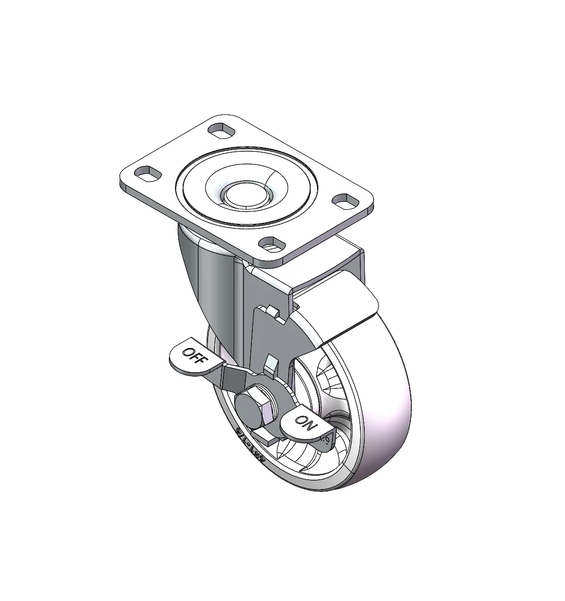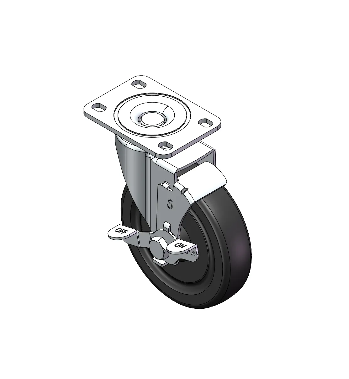 Casters with Side Brakes and With locking system. Top Plate Riveted and Stamping with 75 x 45 mm (3" x 1-3/4") Bolt Hole Spacing.