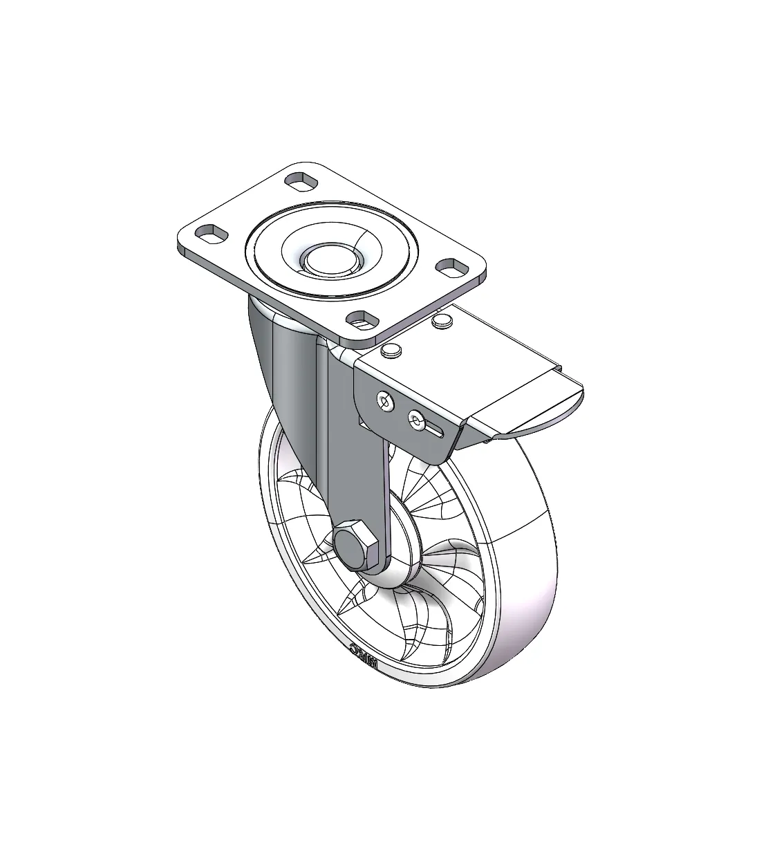 Casters with Side Brakes and With locking system. Top Plate Riveted and Stamping with 75 x 45 mm (3" x 1-3/4") Bolt Hole Spacing.