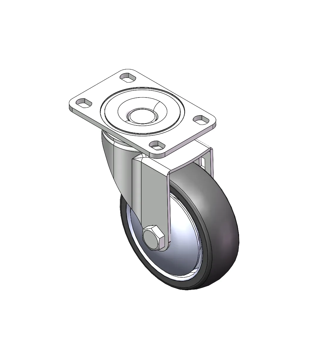 Swivel Caster with Riveted Fork and Stamping Fork—75 x 45 mm (3" x 1-3/4") Bolt Hole Spacing