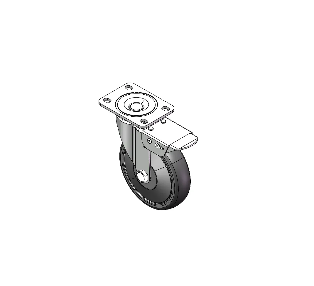 Casters with Side Brakes and With locking system. Top Plate with Riveted Fork and 75 x 45 mm (3" x 1-3/4") Bolt Hole Spacing.