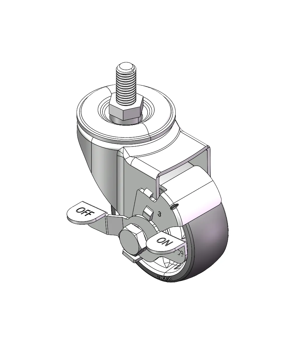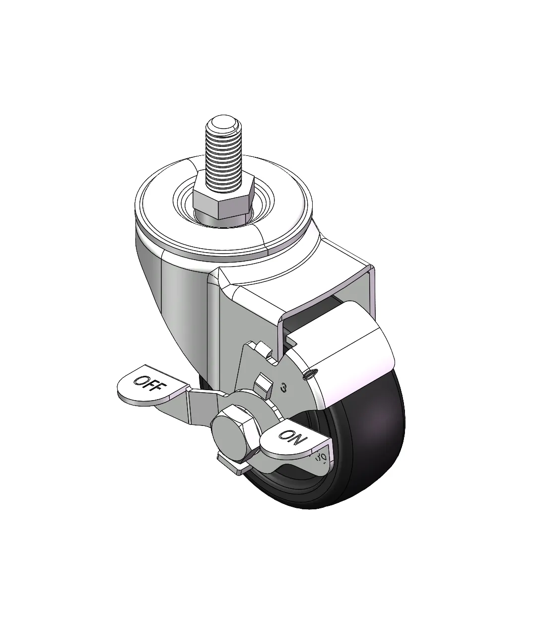 Casters with Side Brakes and With locking system. Threaded Stem Riveted Pressed Fork—M12-P1.75.
