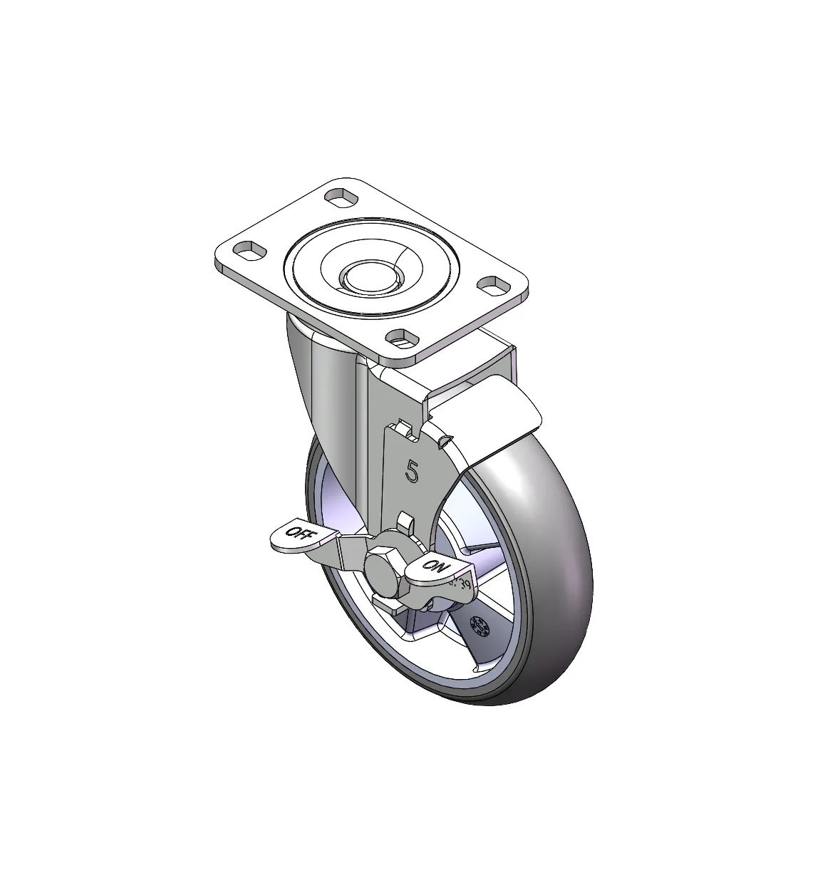 Casters with Total Brakes and With locking system. Threaded Stem Riveted Pressed Fork—3/8"-16"