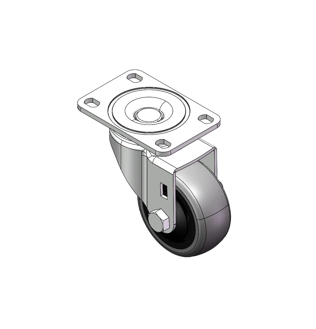 Swivel castor, Top Plate Riveted Stamping Fork - 75 x 45 mm (3" x 1-3/4") Bolt Hole Spacing Surface Zine-Plated, Top Plate (4T) Mounting Type device High-quality Impact Resistance Polypropylene Wheel Center,High-Quality Thermoplastic Rubber (TPR) Wheel Tread Black-grey, Bearing - Ball Bearing.