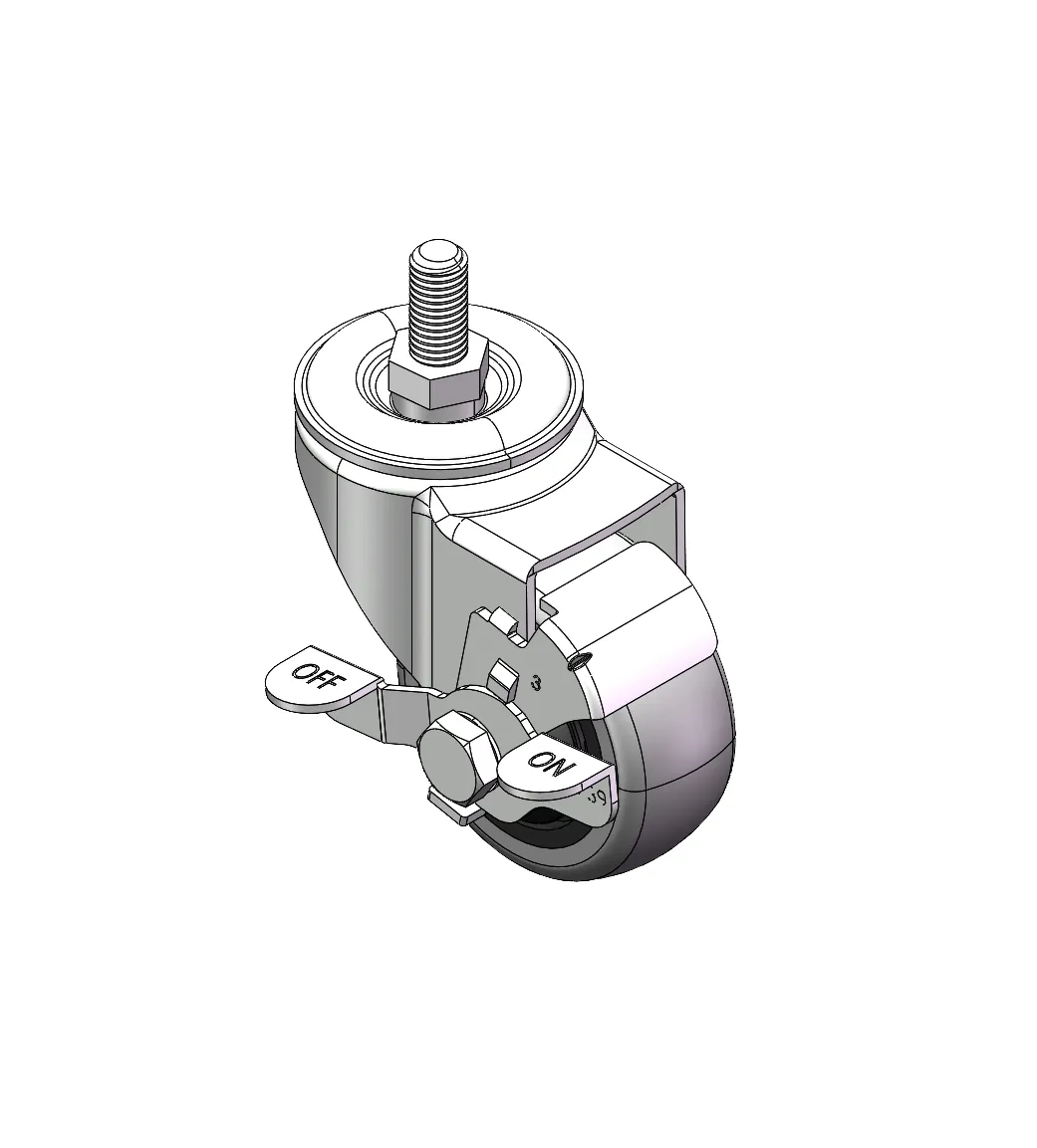 Castors with Side Brakes and Locking system. Threaded Fork - M12-P1.75 Extended control lever surface, Mounting Type - Threaded Stem High-quality Impact Resistance Polypropylene Wheel Center,High-Quality Thermoplastic Rubber (TPR) Wheel Tread Black-grey, Bearing - Ball Bearing.