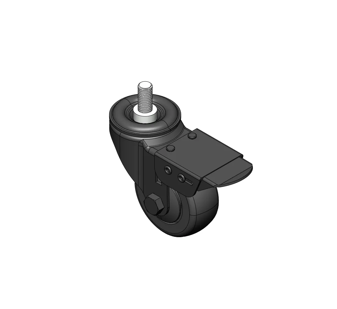 Castors with Total Brake Locking system. Thread Riveting Stamping Tripod—M12-P1.75 Surface electroplating, Threaded Stem installation device Reinforced impact-resistant High-quality Impact Resistance Polypropylene Wheel Center,High-Quality Thermoplastic Rubber (TPR) wheel tread Black, Bearing—Ball Bearing.