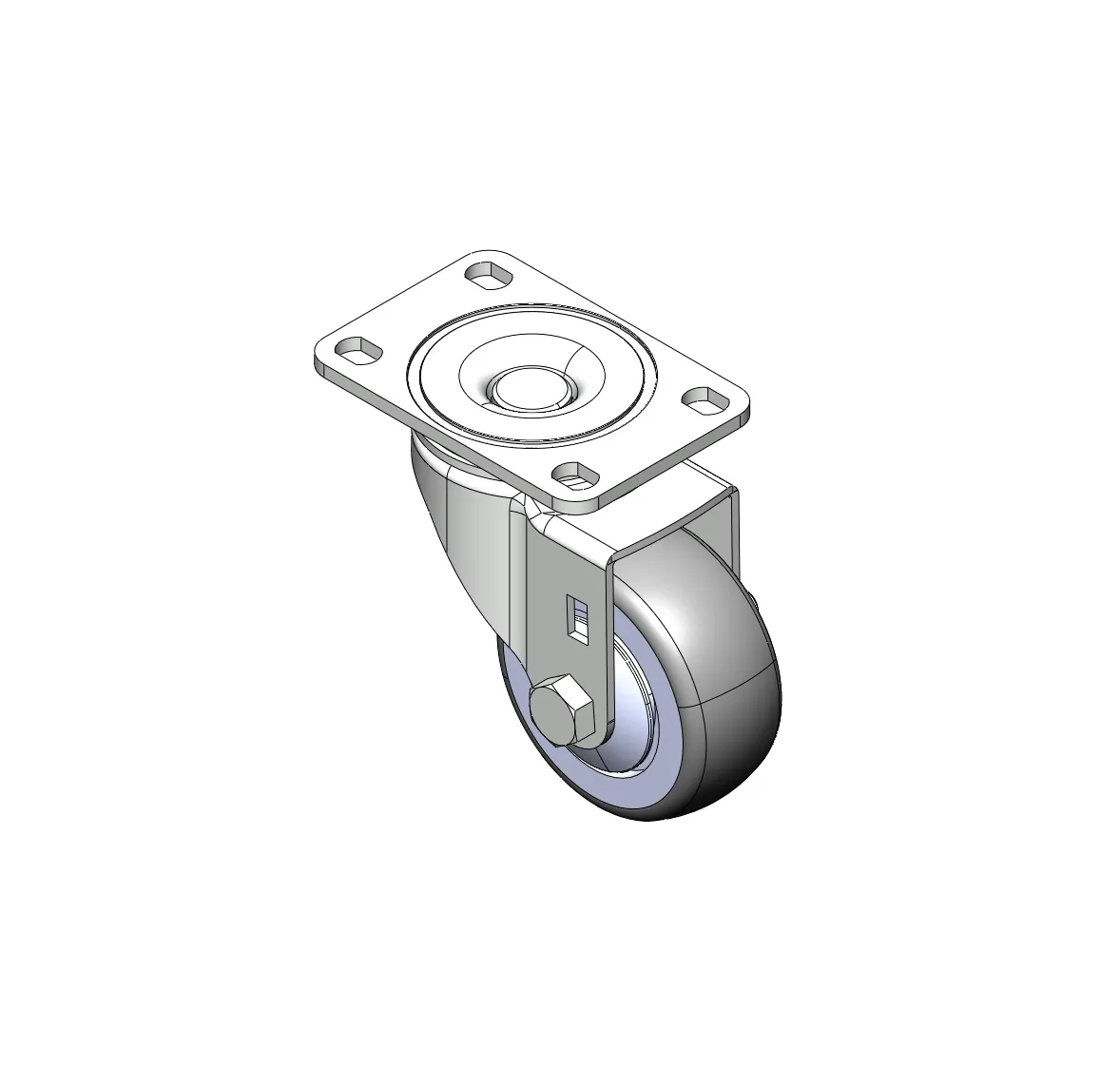 Rigid castor, one-piece Stamping Fork - 75 x 45 mm (3" x 1-3/4") Bolt Hole Spacing Surface Zine-Plated, Mounting Type - Top Plate High-quality Impact Resistance Polypropylene Wheel Center,High-Quality Thermoplastic Rubber (TPR) Wheel Tread Gray, Bearing - Ball Bearing.