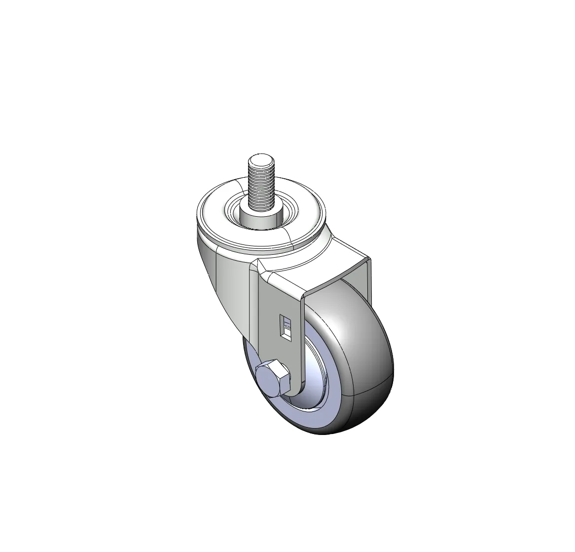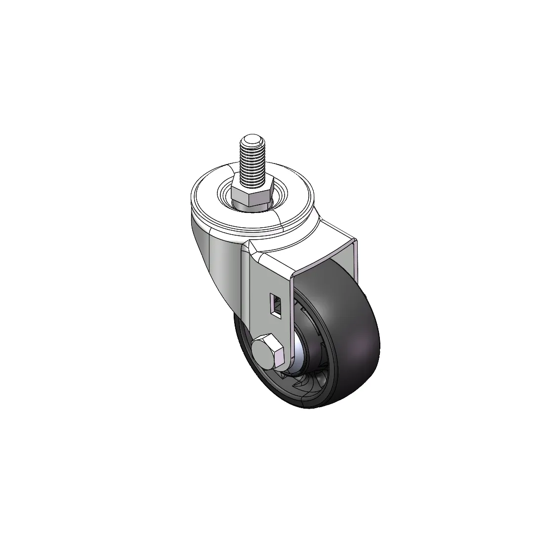 Swivel Caster, thread-Riveted Stamping Fork—M12-P1.75 Extended control lever surface, Mounting Type - Threaded Stem High-quality Impact Resistance Polypropylene Wheel Center,High-Quality Thermoplastic Rubber (TPR) Wheel Tread Gray, Bearing—Ball Bearing.