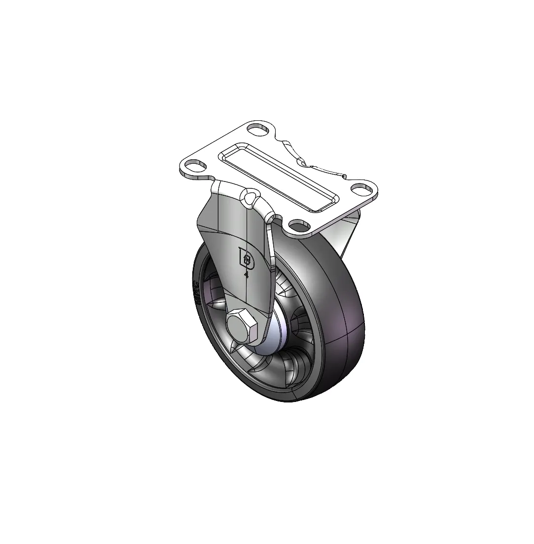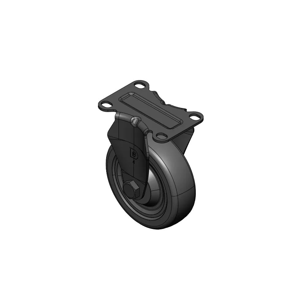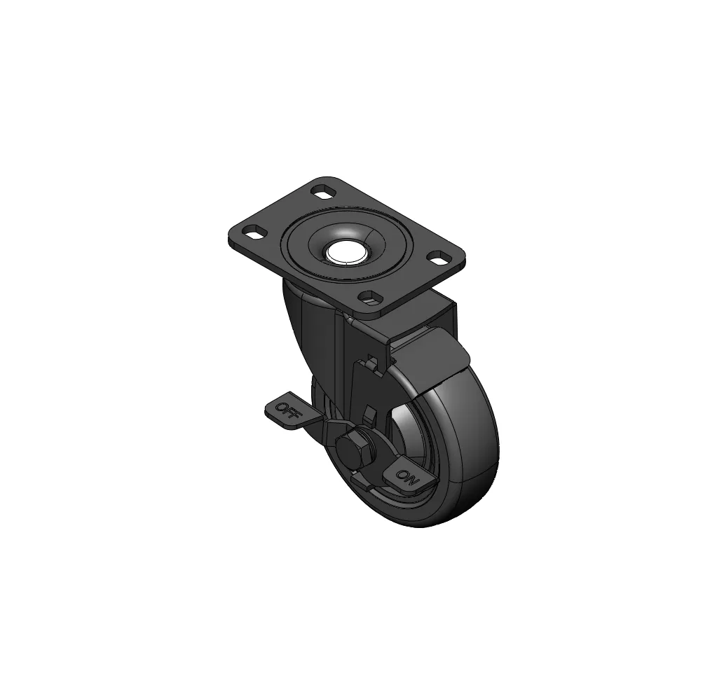 Rigid castors, Stamping Fabricated Caster Fork - 75 x 45 mm (3" x 1-3/4") Bolt Hole Spacings Extended control lever surface, Top Plate installation Polypropylene Wheel Center, Wheel Tread Black, wheels—Plain Bearing.