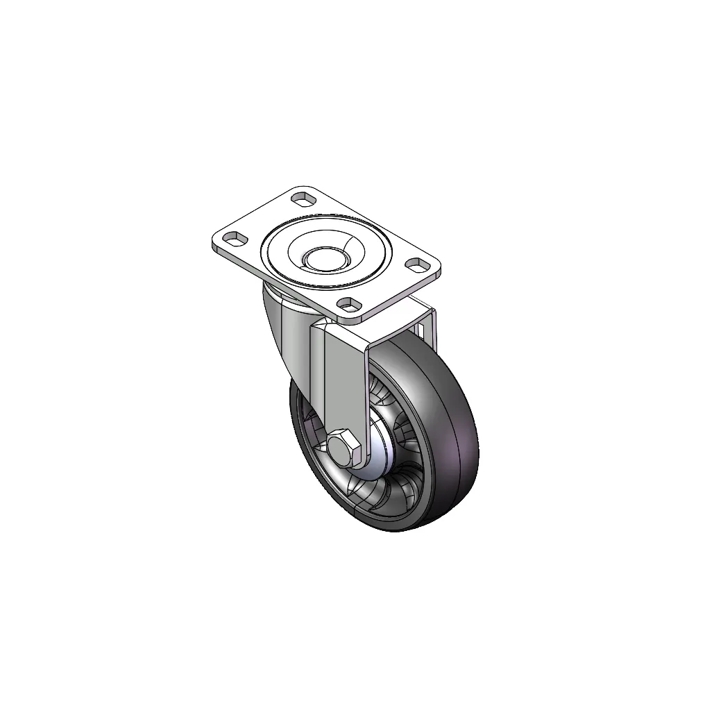 Swivel Casters, Top Plate Riveted Fork - 75 x 45 mm (3" x 1-3/4") Bolt Hole Spacings Extended control lever surface, Top Plate (4T) installation device Polypropylene Wheel Center, Wheel Tread Black, wheels—Plain Bearing.