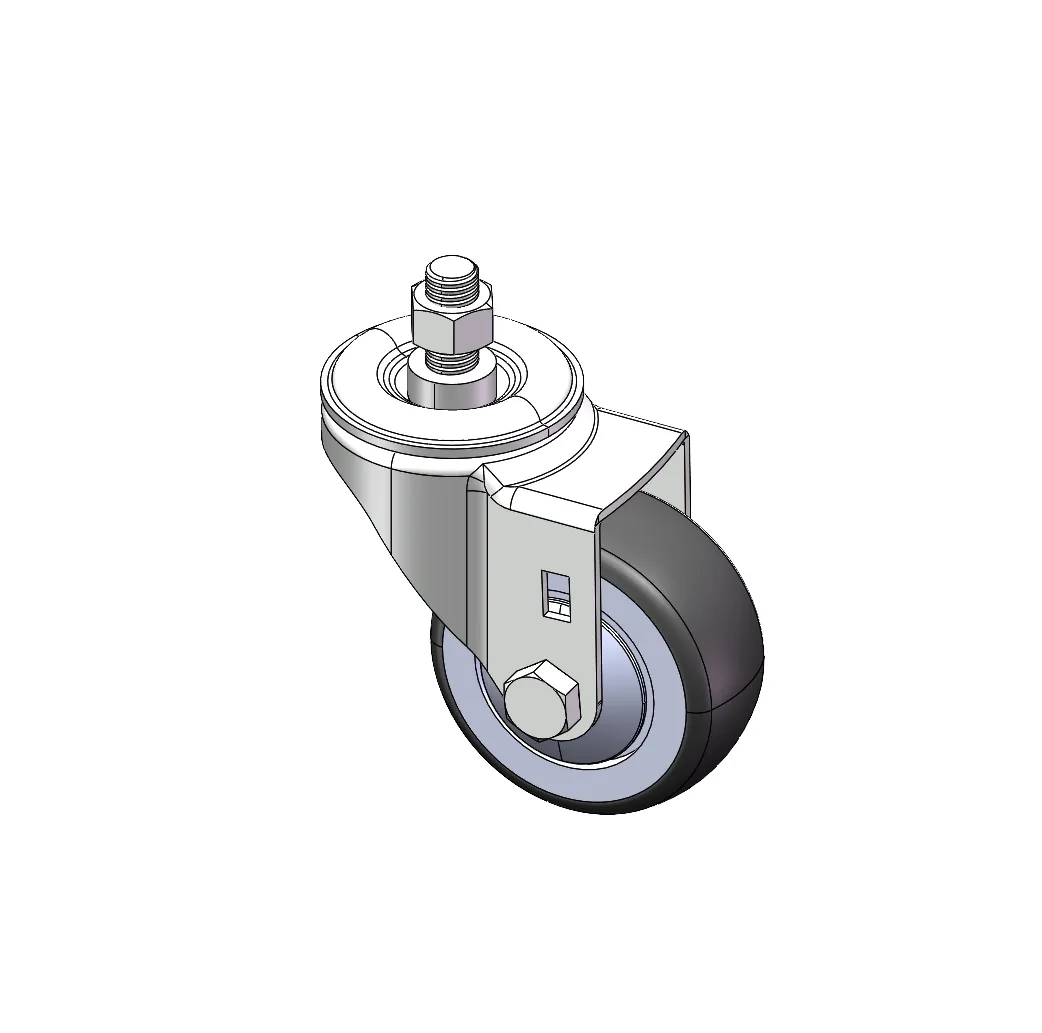 Casters with Total Brakes and Locking system. Threaded Fork - 1/2"-12 Zine-Plated, Mounting Type - Threaded Stem Reinforced impact-resistant High-quality Impact Resistance Polypropylene Wheel Center,High-Quality Thermoplastic Rubber (TPR) Wheel Tread Pearl grey, Bearing - Ball Bearing.