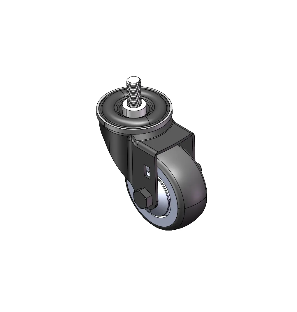 Swivel Caster, thread-Riveted Stamping Fork—1/2"-12 Extended control lever surface, Mounting Type - Threaded Stem Reinforced impact-resistant High-quality Impact Resistance Polypropylene Wheel Center,High-Quality Thermoplastic Rubber (TPR) Wheel Tread Pearl-colored dark gray, Bearing—Ball Bearing.