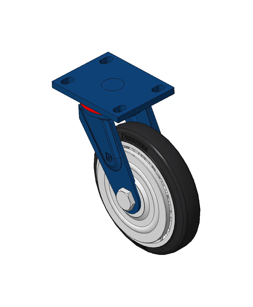 Swivel Caster with Welded Caster Fork, blue paint finish.