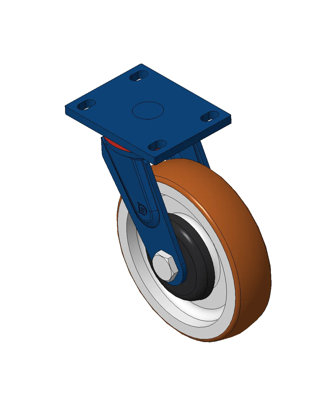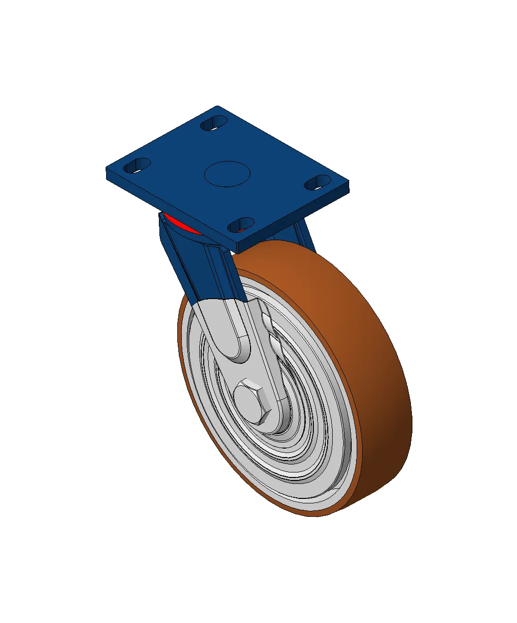 Swivel Casters, Welded Caster Fork Surface spray blue paint, Top Plate installation device, Hole spacing 110x75 Wheel core made of cast iron, high quality polyurethane Wheel Tread, Cast Iron brown Bearing—Ball Bearing