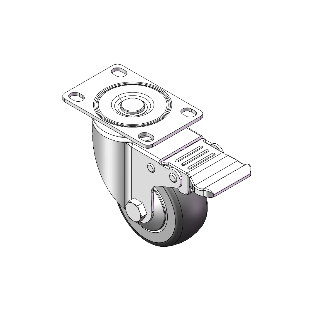 Casters with Total Brakes and With locking system. Top Plate with Riveted, Fork and 75 x 45 mm (3" x 1-3/4") Bolt Hole Spacing.