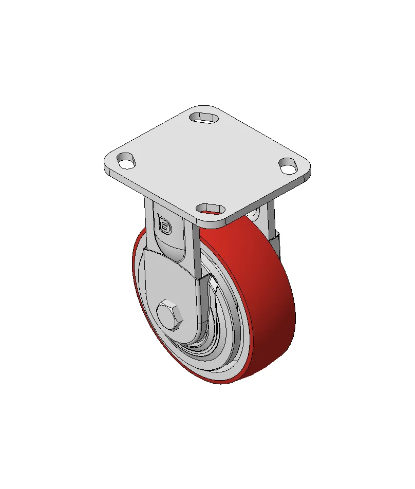 Rigid Caster with Welded Caster Fork Zine-Plated, Mounting Type - Top Plate, 85x70 Bolt Hole Spacing Cast Iron Wheel Center with High Quality Polyurethane tread, Cast Iron red Bearing—Ball Bearing
