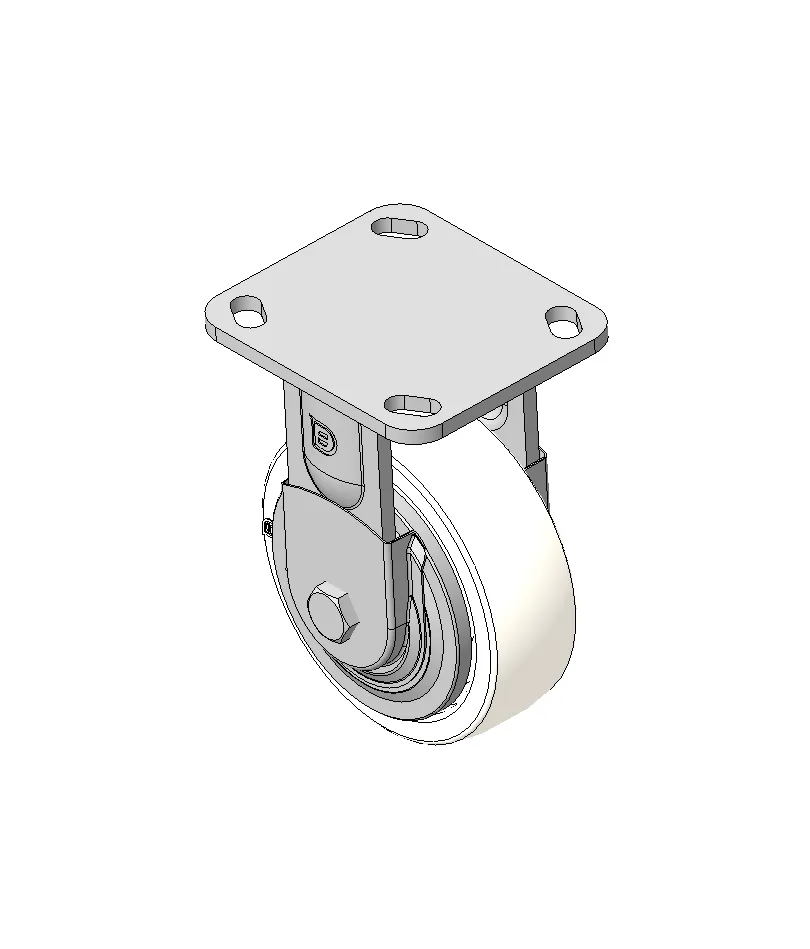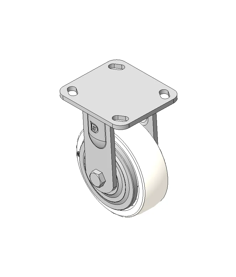 Rigid Caster, Welded Caster Fork Extended control lever surface, Top Plate Mounting Type, Hole spacing 85x70 Polypropylene Wheel Center, Wheel Tread Natural Color Bearing - Ball Bearing