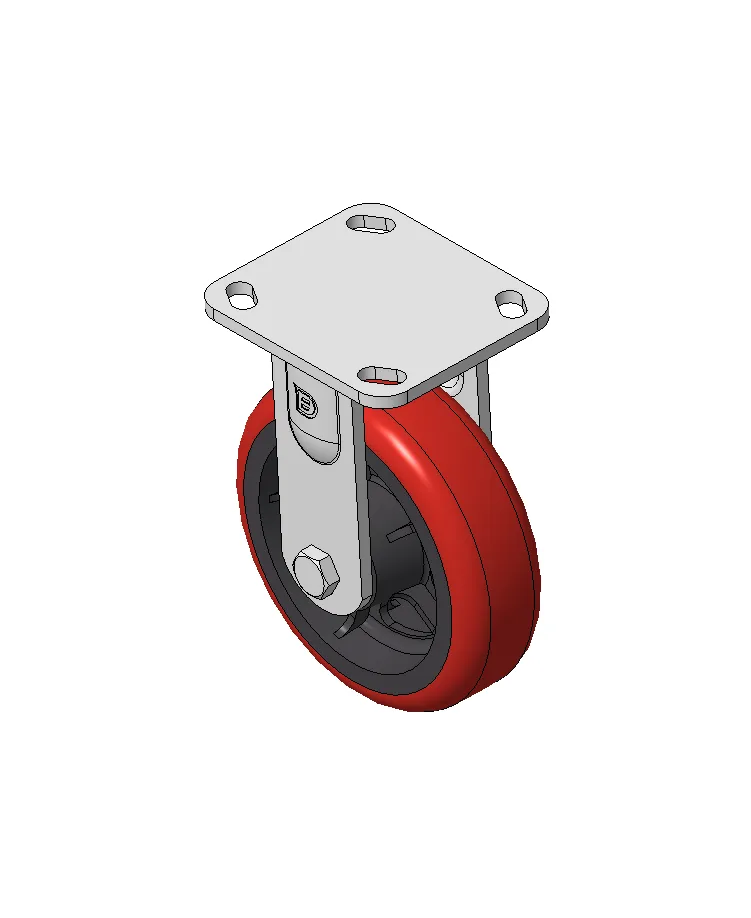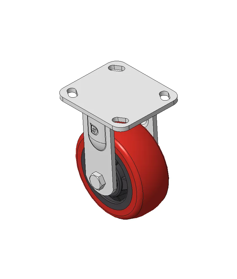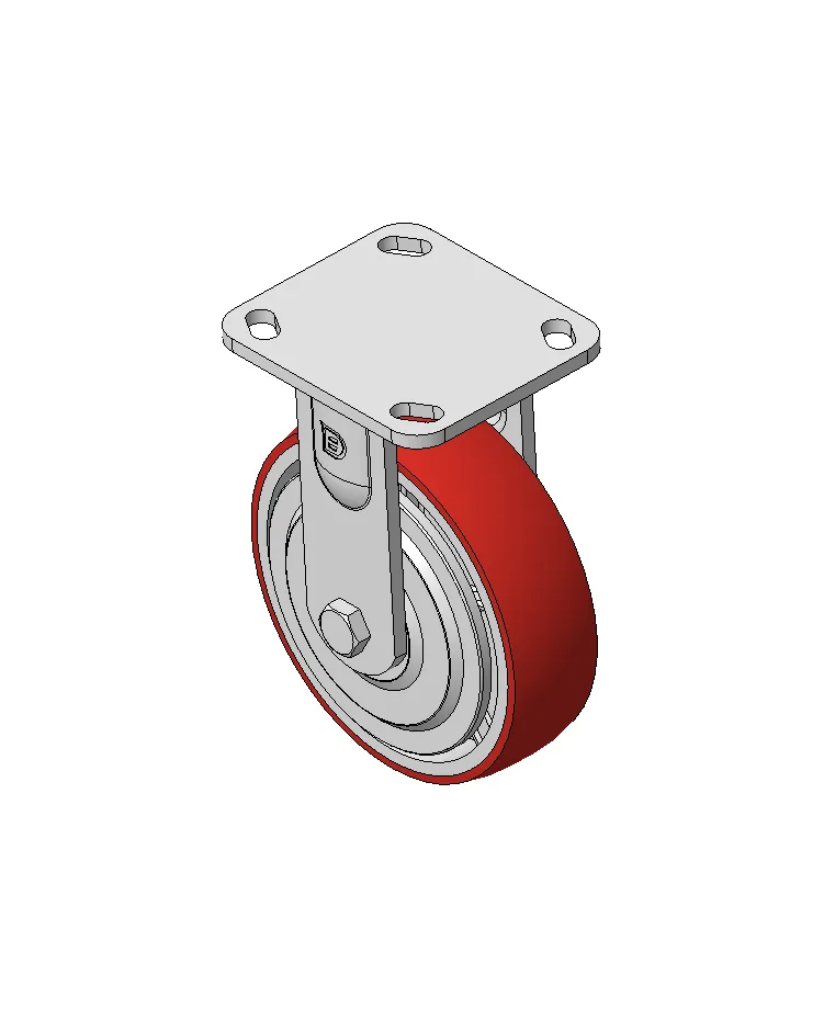 Rigid castor, Welded Caster Fork Extended control lever surface, Top Plate Mounting Type, Hole spacing 85x70 Cast Iron Wheel Center, High Quality Polyurethane wheel tread, Cast Iron red Bearing - Ball Bearing