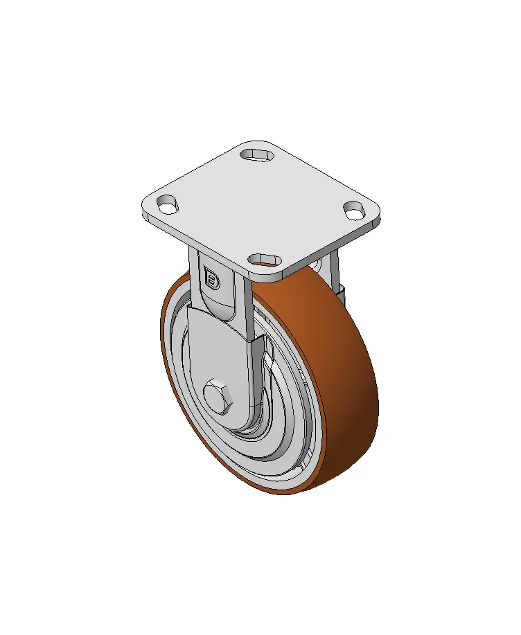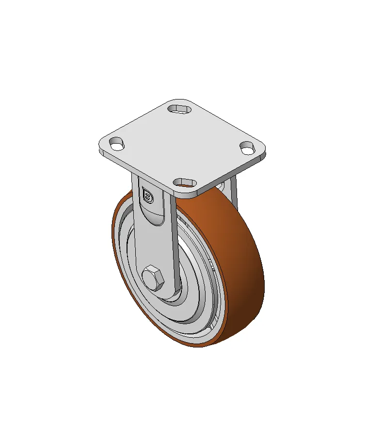 Rigid Caster with Welded Caster Fork Zine-Plated, Mounting Type - Top Plate, 85x70 Bolt Hole Spacing Cast Iron Wheel Center with High Quality Polyurethane tread, Cast Iron brown Bearing—Ball Bearing
