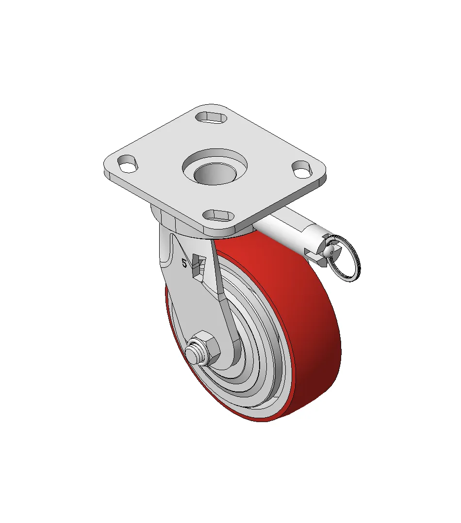 Casters with directional brakes and With locking system, Welded Caster Fork Zine-Plated, Mounting Type - Top Plate, 85x70 Bolt Hole Spacing Cast Iron core, High Quality Polyurethane Wheel Tread, Cast Iron red Bearings—Ball Bearings with special Anti-thread wheel cover