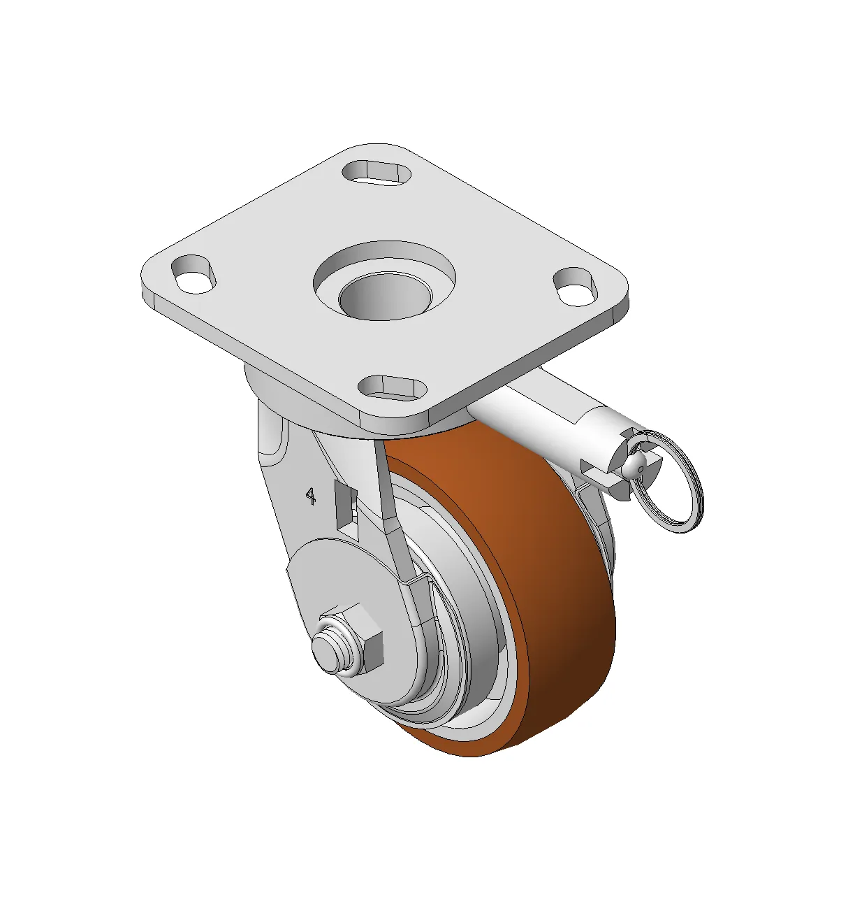 Castors with directional brake, Locking system, Welded Caster Fork Surface Zine-Plated, Top Plate Mounting Type, Hole spacing 85x70 Wheel core made of cast iron, High Quality Polyurethane wheel tread, Cast Iron brown Bearing - Ball Bearing