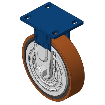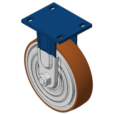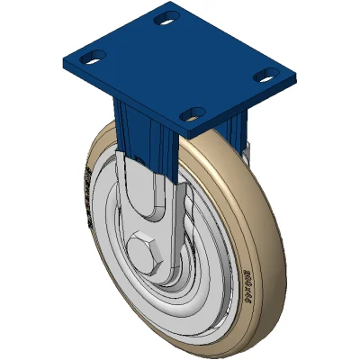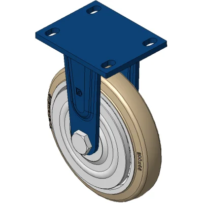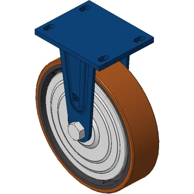 Rigid Caster with Welded Caster Fork Blue painted finish, Mounting Type - Top Plate, 110x75 Bolt Hole Spacing Cast Iron core with High Quality Polyurethane Wheel Tread, Cast Iron brown Bearings – Ball Bearings