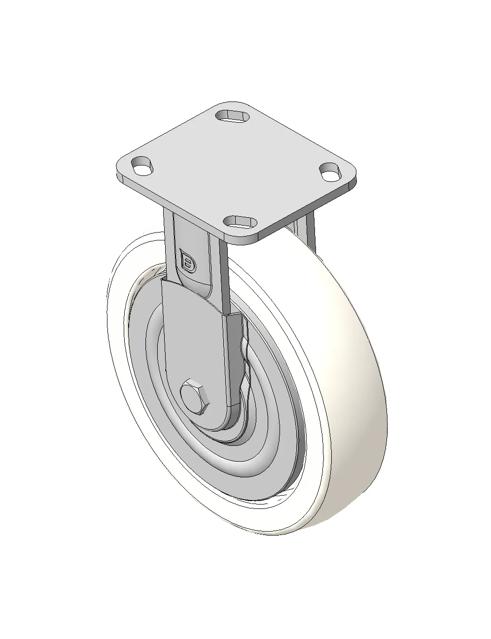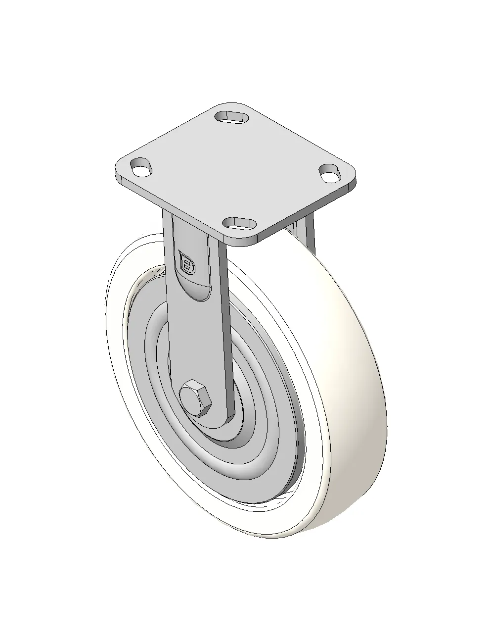 Rigid Caster, Welded Caster Fork Extended control lever surface, Top Plate Mounting Type, Hole spacing 85x70 Reinforced Polypropylene, Wheel Tread Natural Color Bearing - Ball Bearing