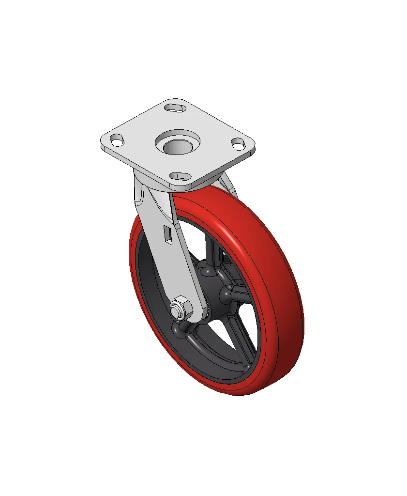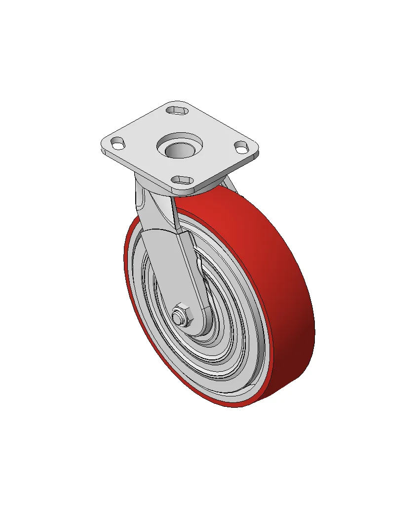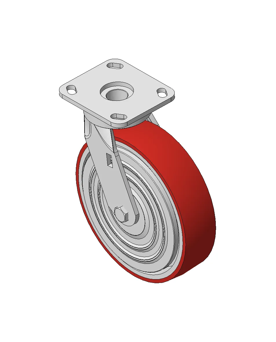 Swivel Caster with Welded Caster Fork Zine-Plated, Mounting Type - Top Plate, 85x70 Bolt Hole Spacing Cast Iron Wheel Center with High Quality Polyurethane tread, Cast Iron red Bearing—Ball Bearing