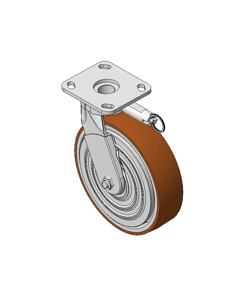 Casters with Directional Lock locking system, Welded Caster Fork Zine-Plated, Mounting Type - Top Plate, 85x70 Bolt Hole Spacing Cast Iron Wheel Center, High Quality Polyurethane tread, Cast Iron brown Bearing—Ball Bearing