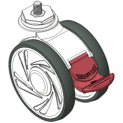 Long Total Brake Casters, Threaded Stem M12x17