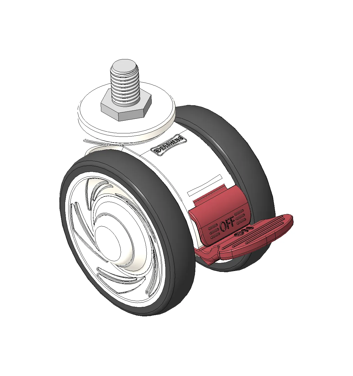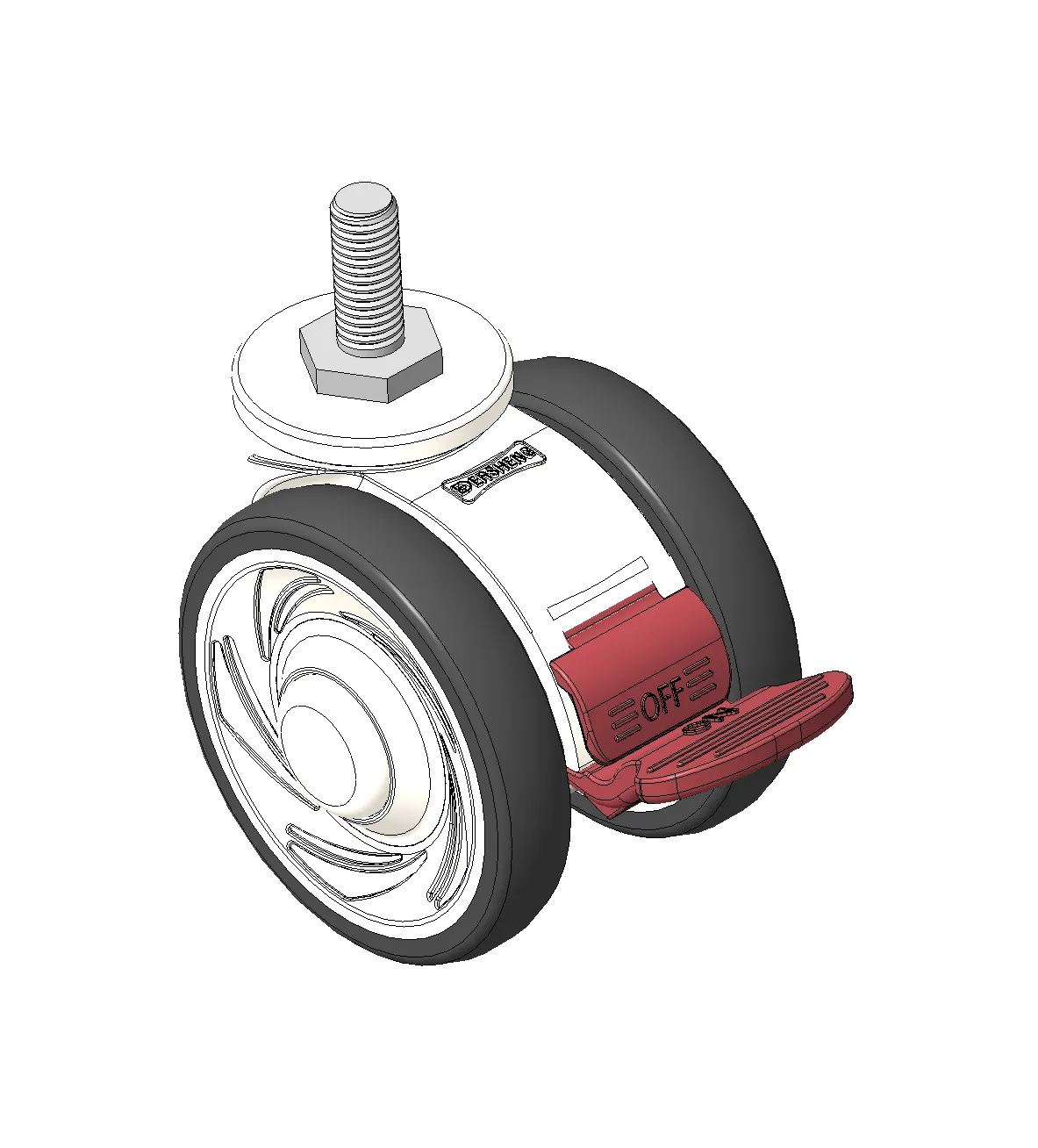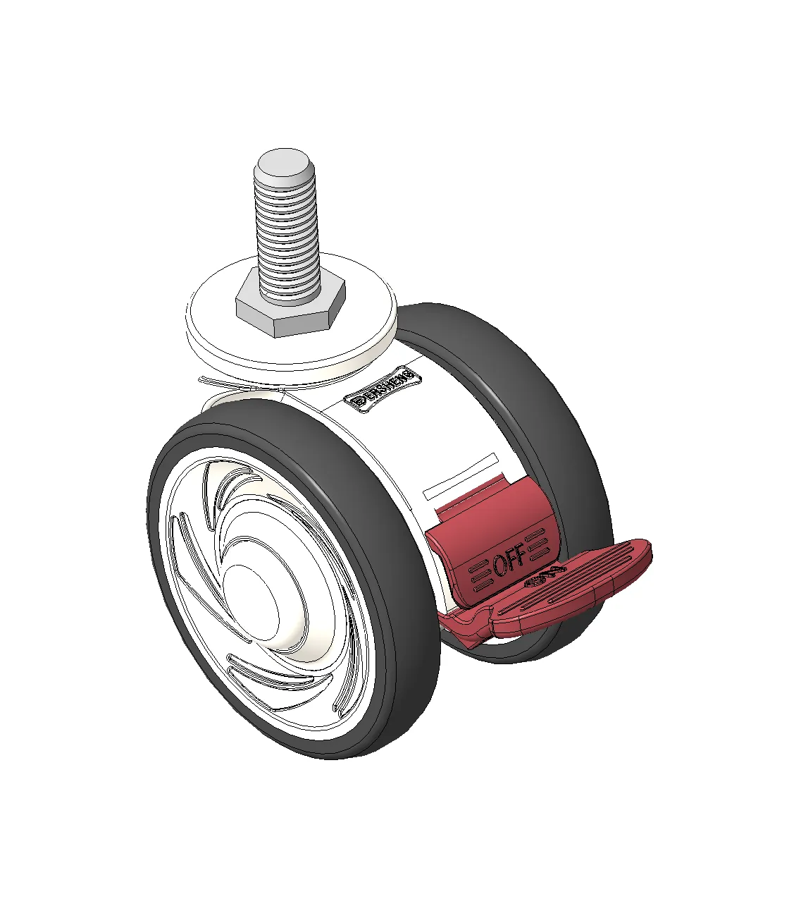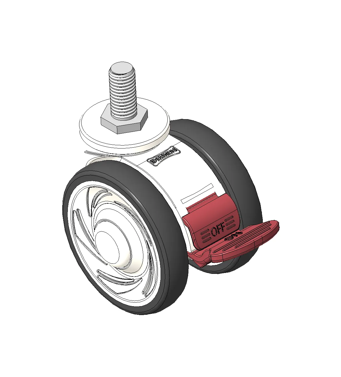 Short Total Brake Casters, Threaded Stem M10x25