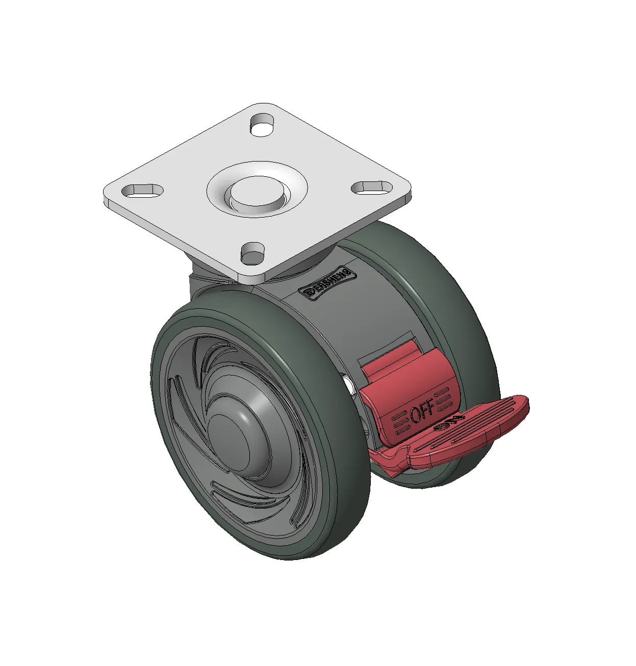 Short Total Brake Casters, 42.5x42.5mm angled hole Top Plate