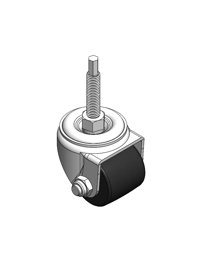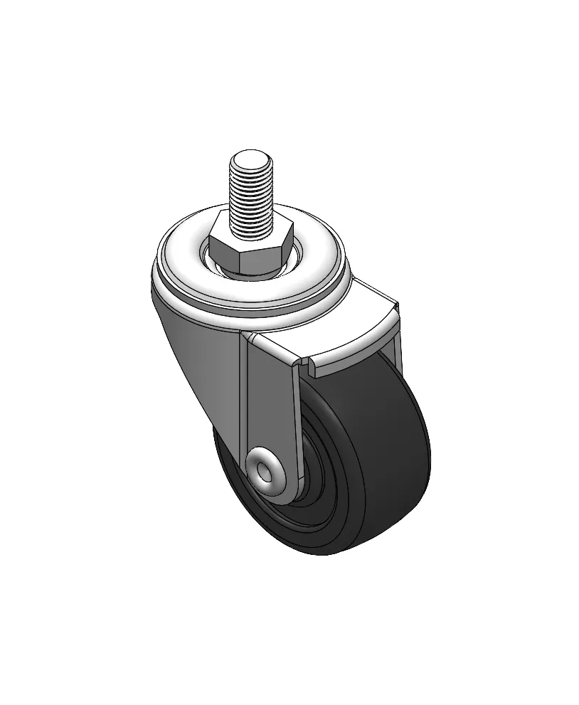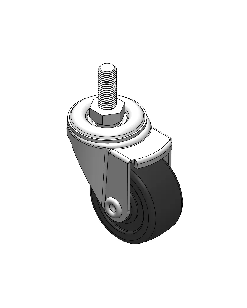 Swivel Caster, thread-Riveted Stamping Fork—M12-P1.75 Zine-Plated, Mounting Type - Threaded Stem Thermoplastic core and tread Black, Bearing—Ball Bearing.
