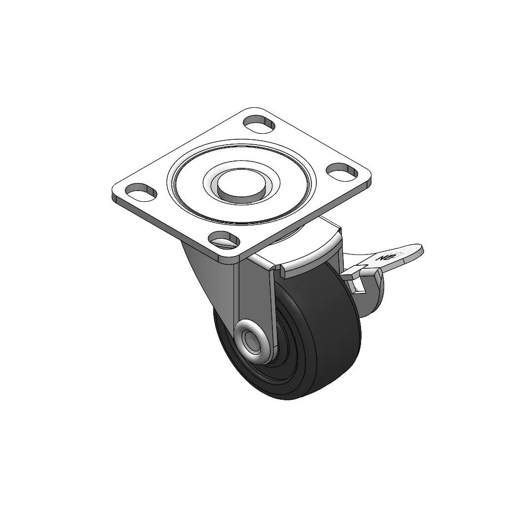 Rigid Caster, Welded footplate - high-grade hole Extended control lever surface, Mounting Type - Top Plate device Reinforced Polypropylene and Wheel Tread Black, Bearing - Ball Bearing.