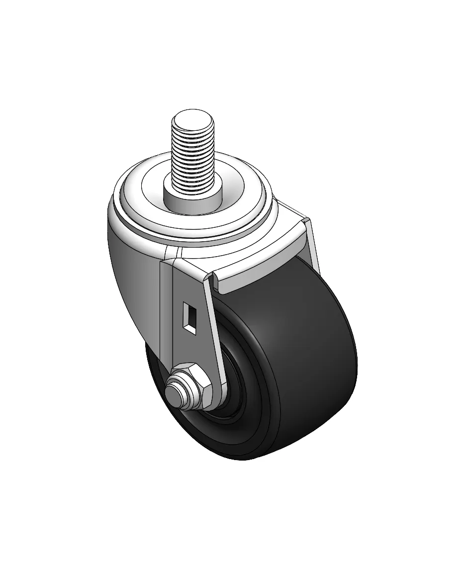 Swivel Caster, thread-Riveted Stamping Fork—M12-P1.75 Zine-Plated, Mounting Type - Threaded Stem Thermoplastic core and tread Bearing—Ball Bearing.