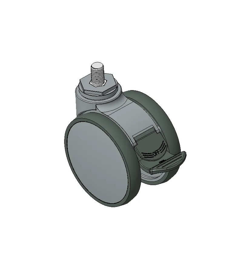 Long Total Brake Casters, Threaded Stem M12x17