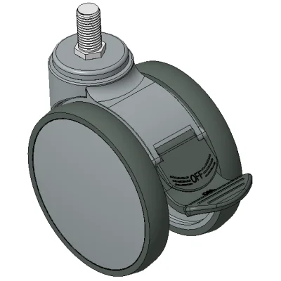 Long Total Brake Casters, Threaded Stem M16x25