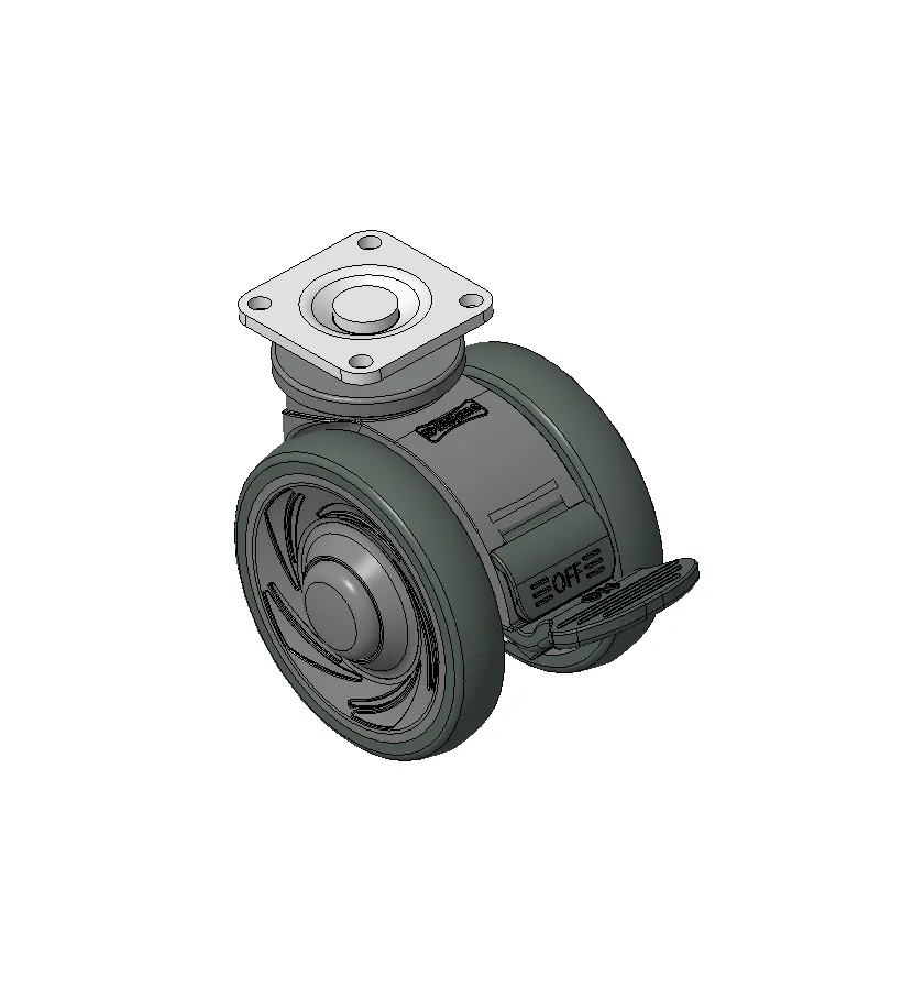 Short Total Brake Casters, 42.5x42.5mm angled perforated Top Plate