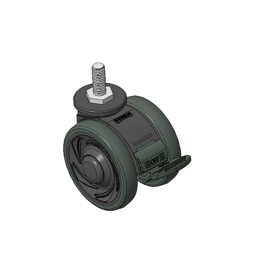 Short Total Brake Casters, Single Bolthole polyamide legs—hollow Ø10.5