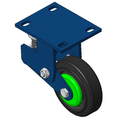 Rigid Spring-loaded Caster with Welded Caster Fork Blue painted finish, Mounting Type - Top Plate, 110x75 Bolt Hole Spacing Cast Iron core with High Quality Polyurethane Wheel Tread Cast Iron black, Bearing – Ball Bearings