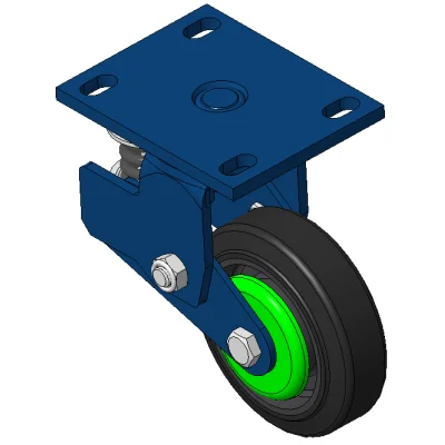 Rigid Spring-loaded Caster with Welded Caster Fork Blue painted finish, Mounting Type - Top Plate, 129 x 74 Bolt Hole Spacing Cast Iron core with High Quality Polyurethane Wheel Tread Cast Iron brown, Bearing – Ball Bearings
