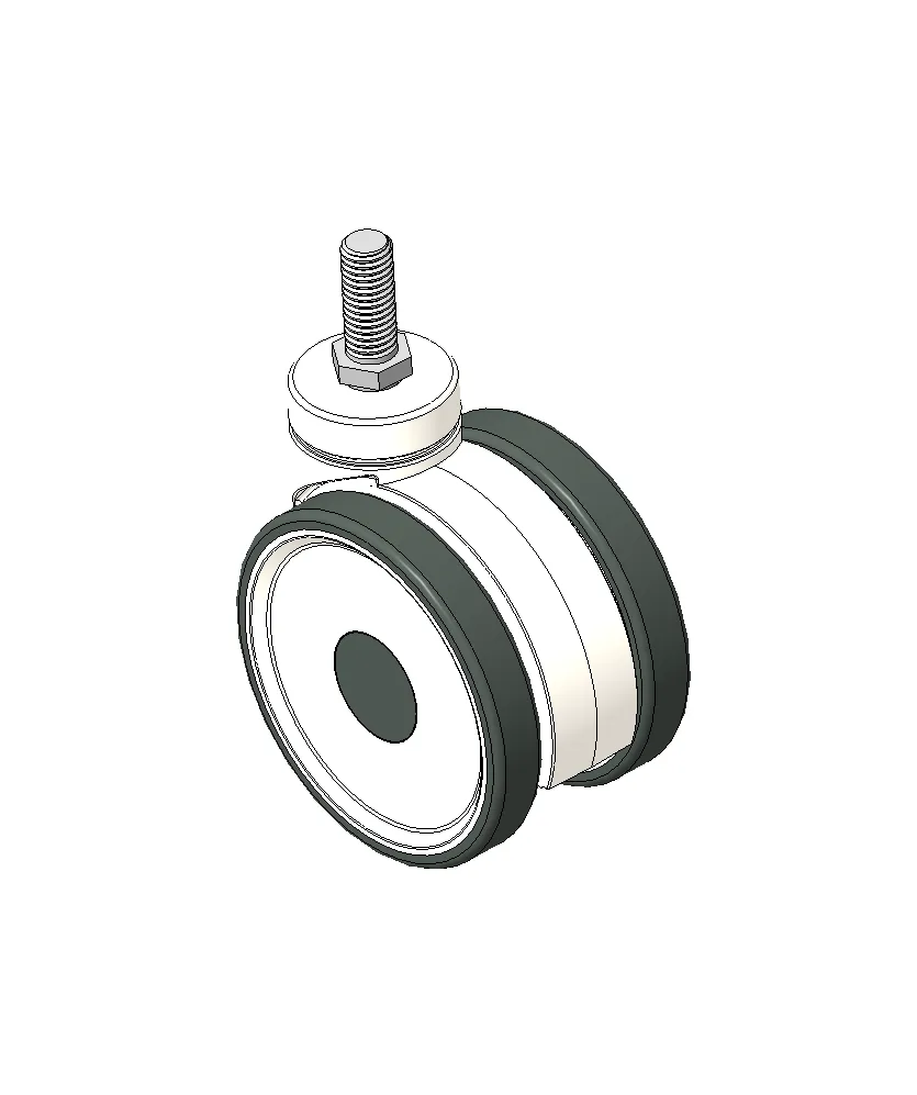 Swivel double ball Caster, M12x25 thread White Fork with High-quality Impact Resistance Polypropylene reinforcement Rustproof, Corrosion resistant, Attractive appearance, Economical, and Reinforced High-quality Impact Resistance Polypropylene core,High-Quality Thermoplastic Rubber (TPR) tread Dark gray, Anti-thread wheel cover