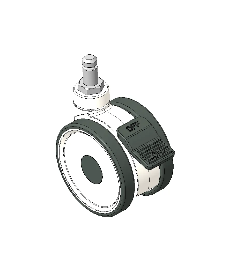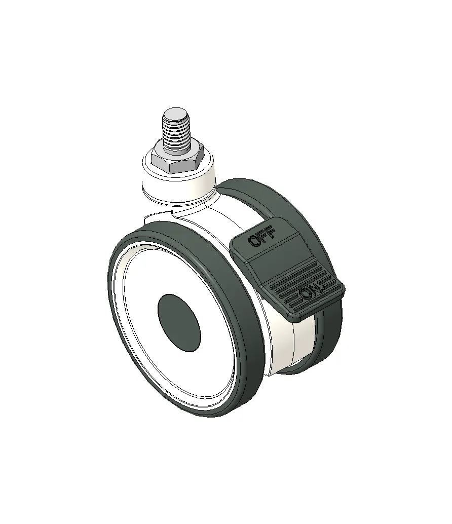 Total Brake Caster, M10x15 thread, white Fork with reinforced Polypropylene Rustproof, Corrosion resistant, Attractive appearance, Economical, and flexible High-Quality Impact-Resistant Polypropylene Wheel Center, High-Quality Reinforced Polypropylene Rubber (TPR) Wheel Tread Dark gray, Plain Bearing