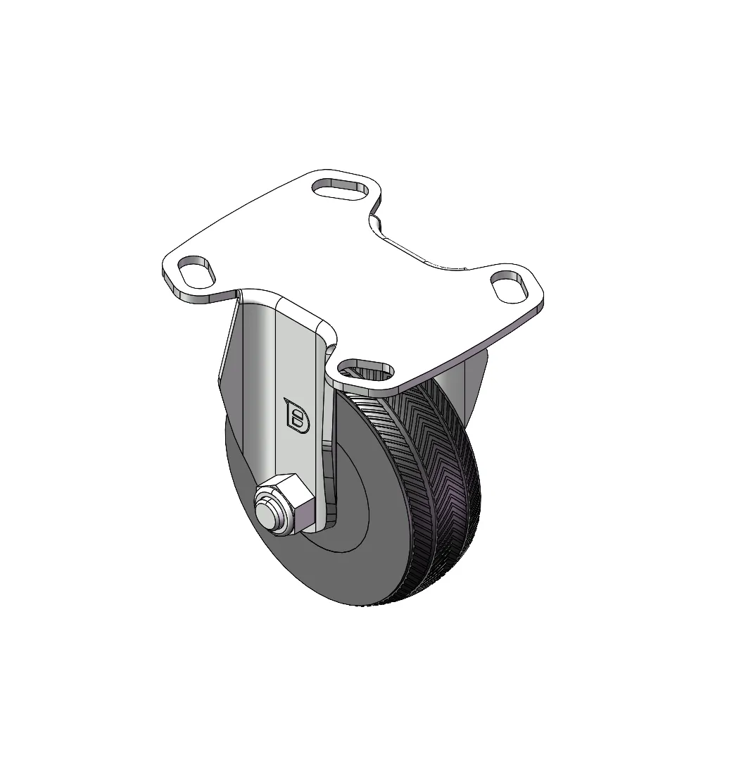 Rigid Caster with integral Stamping Fork and D-shaped hole. Zine-Plated, Top Plate (3.5T) Mounting Type system. Cast Iron Wheel Center with High-Quality Resilient Rubber tread. Black, Ball Bearing.