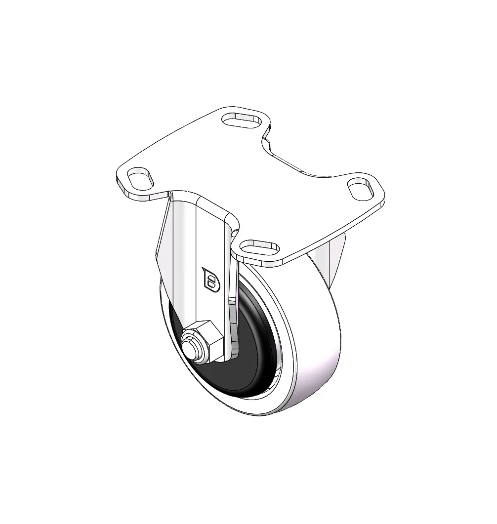 Rigid Caster, integrally molded Stamping Fork with 85 x 70mm (3-3/8" x 2-3/4") Bolt Hole Spacings