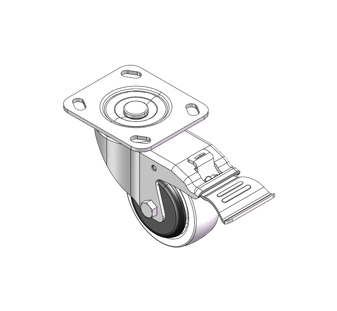 Casters with Total Brakes and With locking system. Top Plate Riveted and Stamping 85 x 70mm (3-3/8" x 2-3/4") Bolt Hole Spacing.