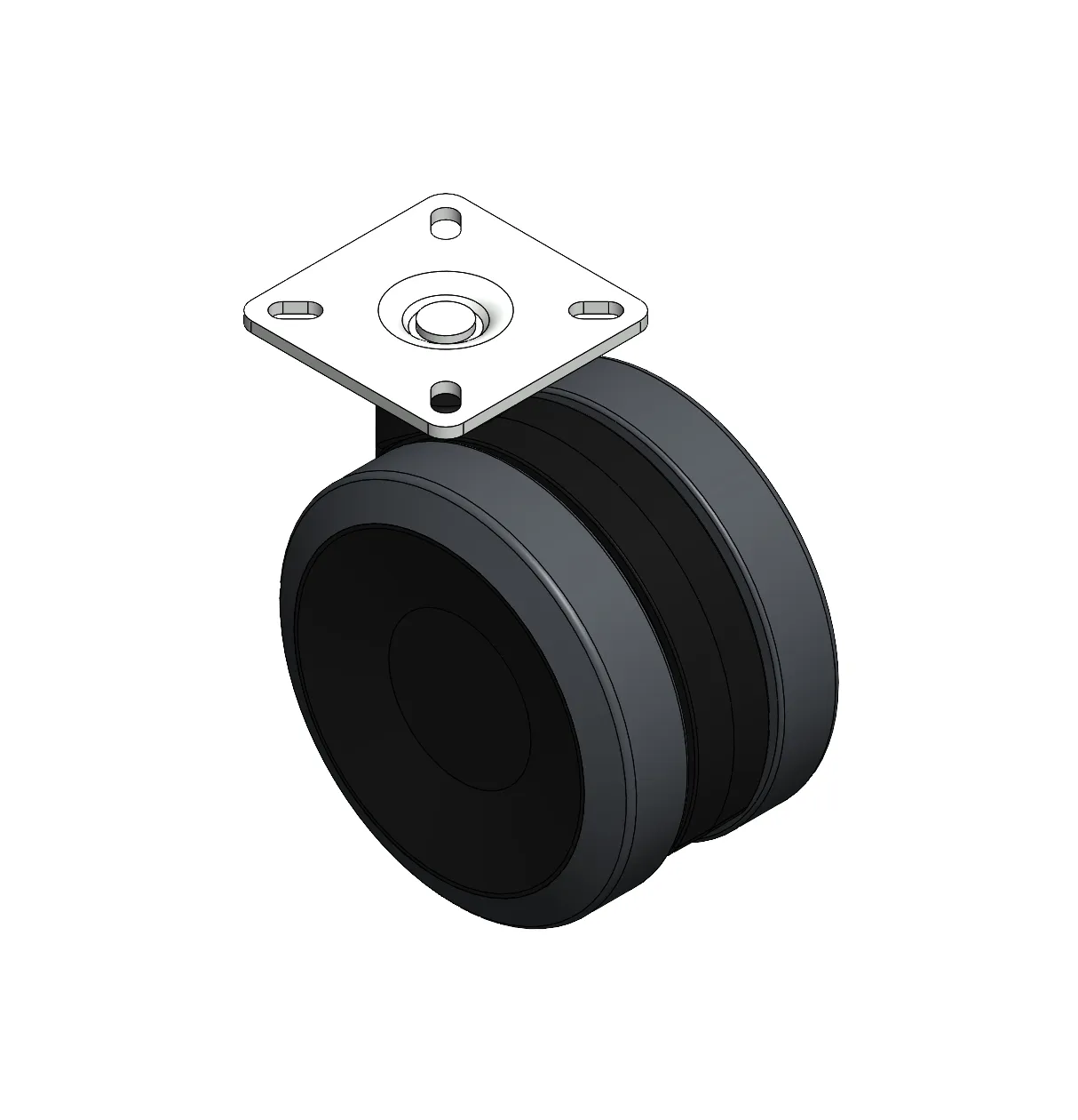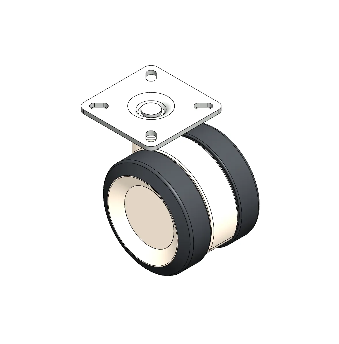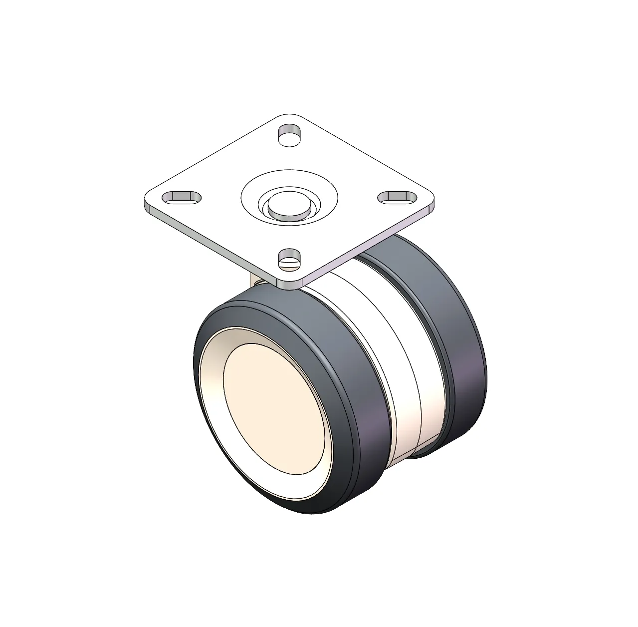 Swivel Caster with injection-molded Fork Riveted to Top Plate. reinforced Polypropylene Fork, Top Plate (3T) Mounting Type system Polypropylene (PP) core, polyvinyl chloride (PVC) tread Dark gray, Anti-thread wheel cover.