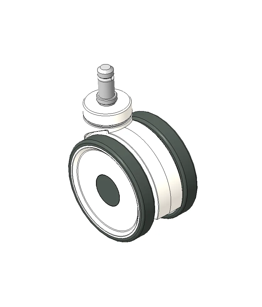 Swivel double ball Caster with Ø11x22" stem and white Fork reinforced with High-quality Impact Resistance Polypropylene. Rustproof, Corrosion resistant, attractive, Economical, and Reinforced. High-quality Impact Resistance Polypropylene core with High-Quality Thermoplastic Rubber (TPR) Wheel Tread and C-ring. Dark gray, Anti-thread wheel cover.