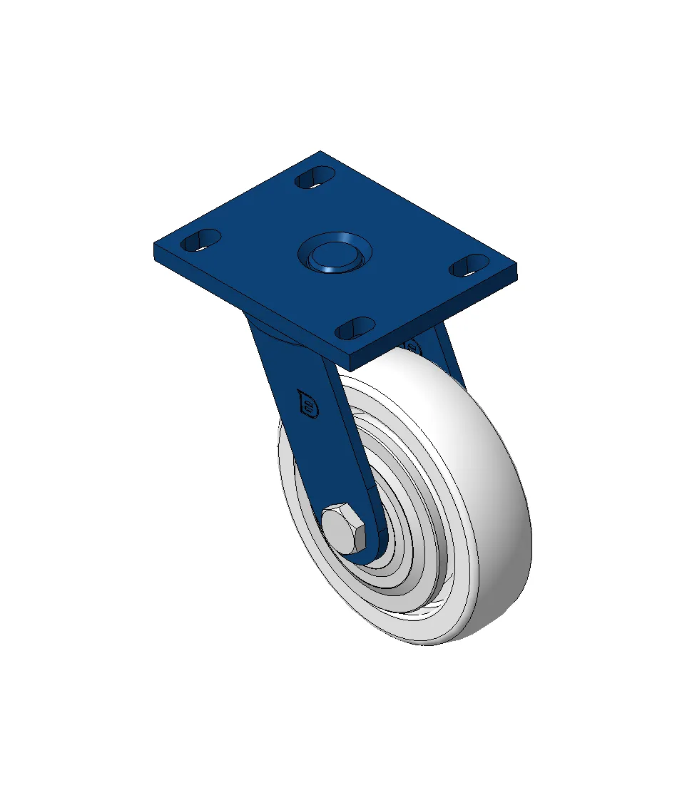 Swivel Caster, Welded Caster Fork, blue paint finish Mounting Type - Top Plate, 110x75 Bolt Hole Spacing Reinforced Polypropylene, Natural Color wheel tread Bearing—Ball Bearing