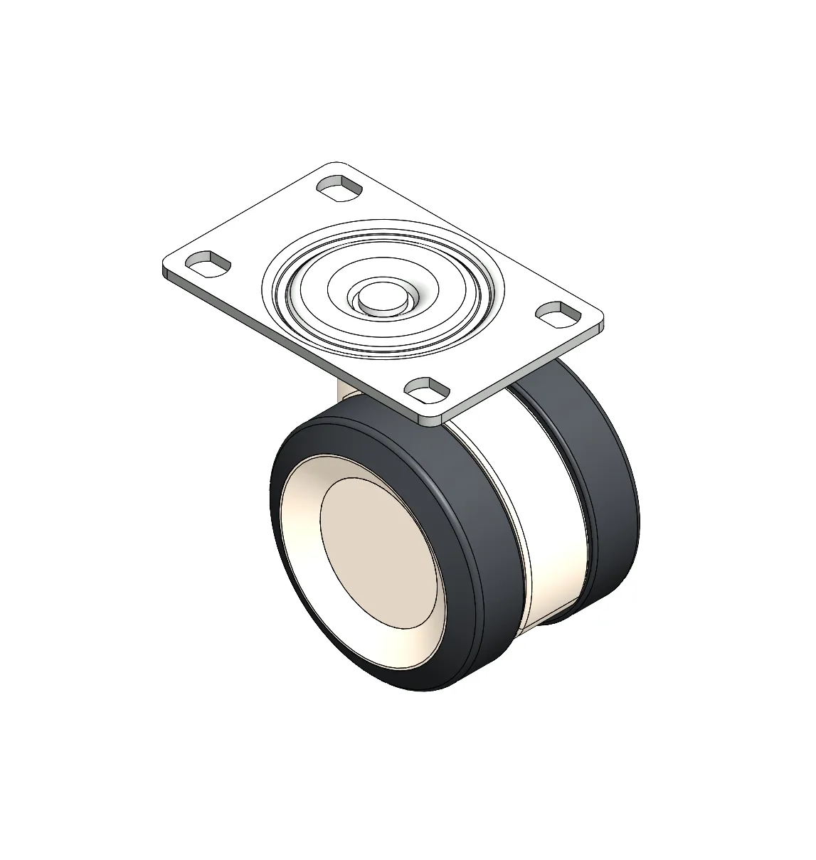 Swivel Caster with injection-molded Fork Riveted to Top Plate. reinforced Polypropylene Fork, Top Plate (3T) Mounting Type system Polypropylene (PP) core, polyvinyl chloride (PVC) tread White-dark gray, wheel - Plain Bearing.