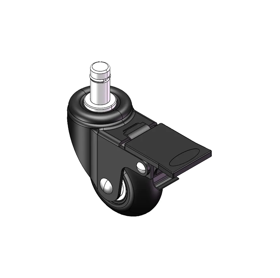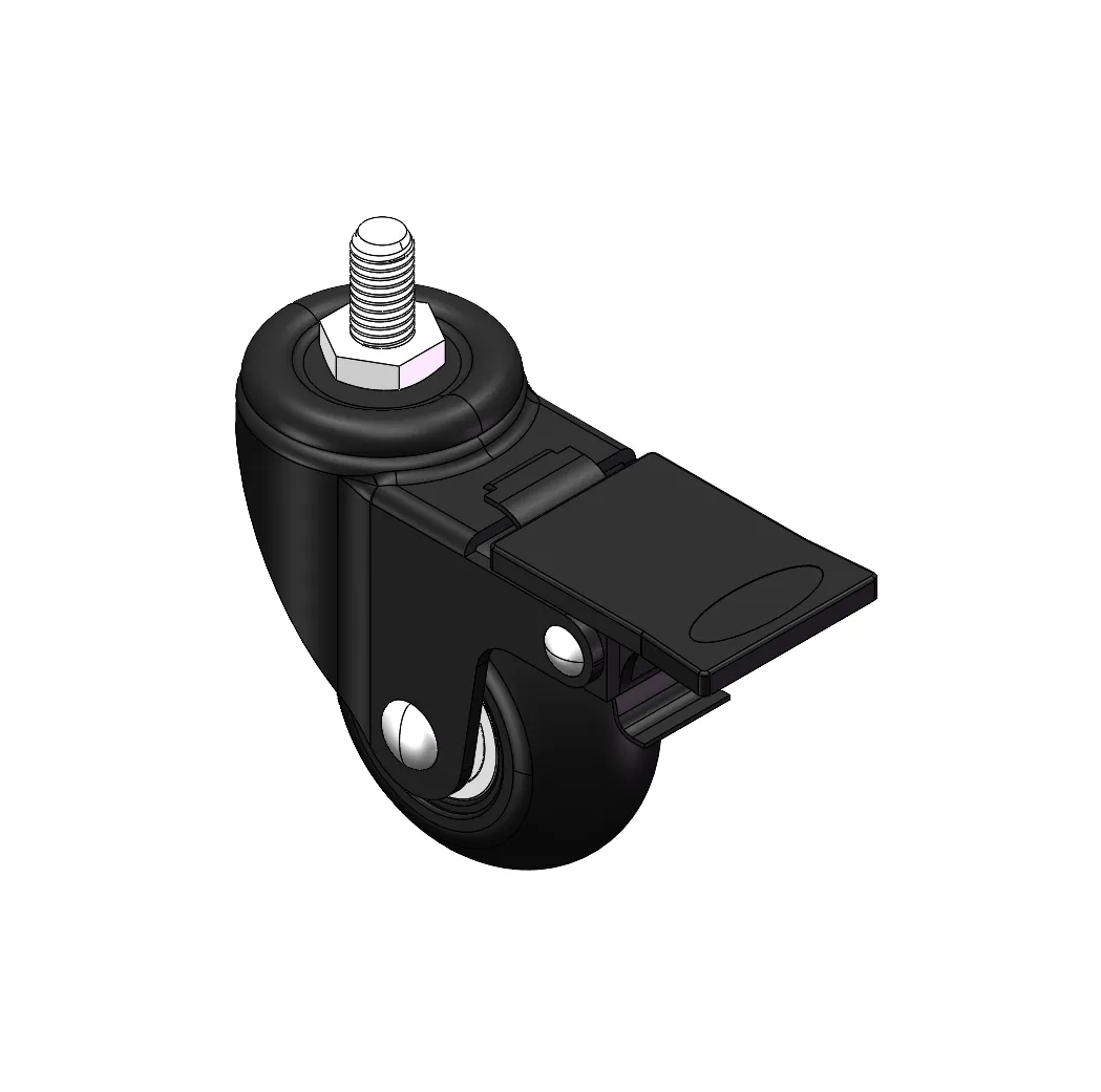 Caster with a single-brake With locking system, thread-Riveted, Injection Molding Fork (3/8"-16).